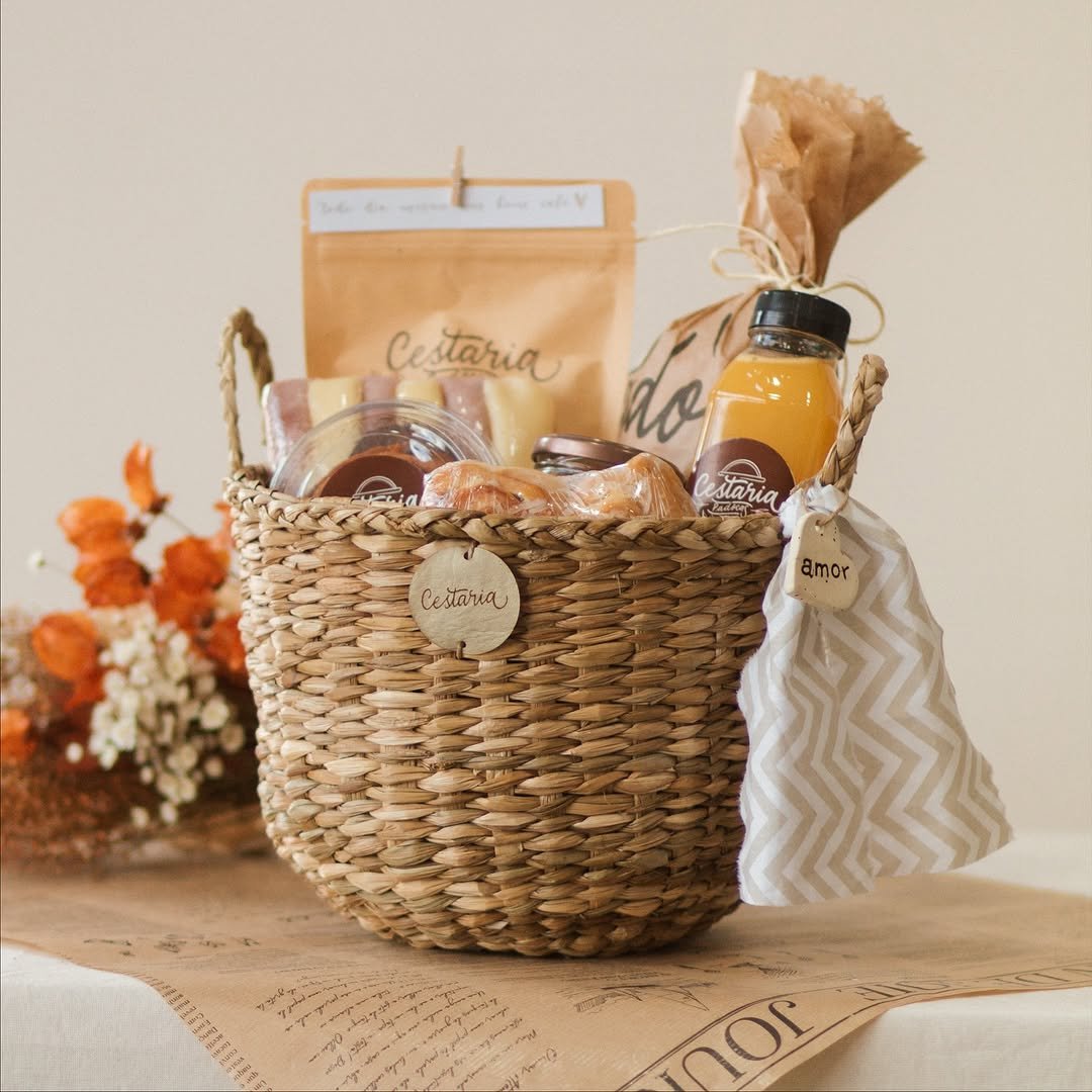 Escolha pães artesanais, doces, bebidas e outros itens especiais para montar uma cesta única e surpreender quem você ama.